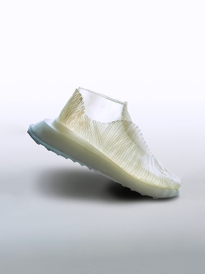 Modern Synthesis’ goal is to produce a new class of material, a composite material that will replace animal-and petrochemical-made sneakers with a biodegradable, yet durable, alternative. The shoe’s upper is made by bacteria that naturally produce nanocellulose (Komagataeibacter rhaeticus). They can be genetically engineered to self-dye by producing melanin for color.